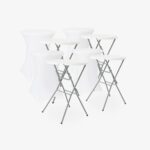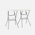 Estas mesas altas tipo barra son perfectas para recibir en ceremonias o eventos familiares. Están dotadas de una buena altura y de una superficie suficiente para colocar los platos y los vasos. Sus invitados estarán cómodos y podrán charlar y degustar cómodamente. Prácticas, se pliegan y despliegan fácilmente para una instalación rápida y un almacenamiento óptimo. El pasador permite un uso con total seguridad. Una vez terminado el evento, será muy fácil plegarlas y guardarlas.